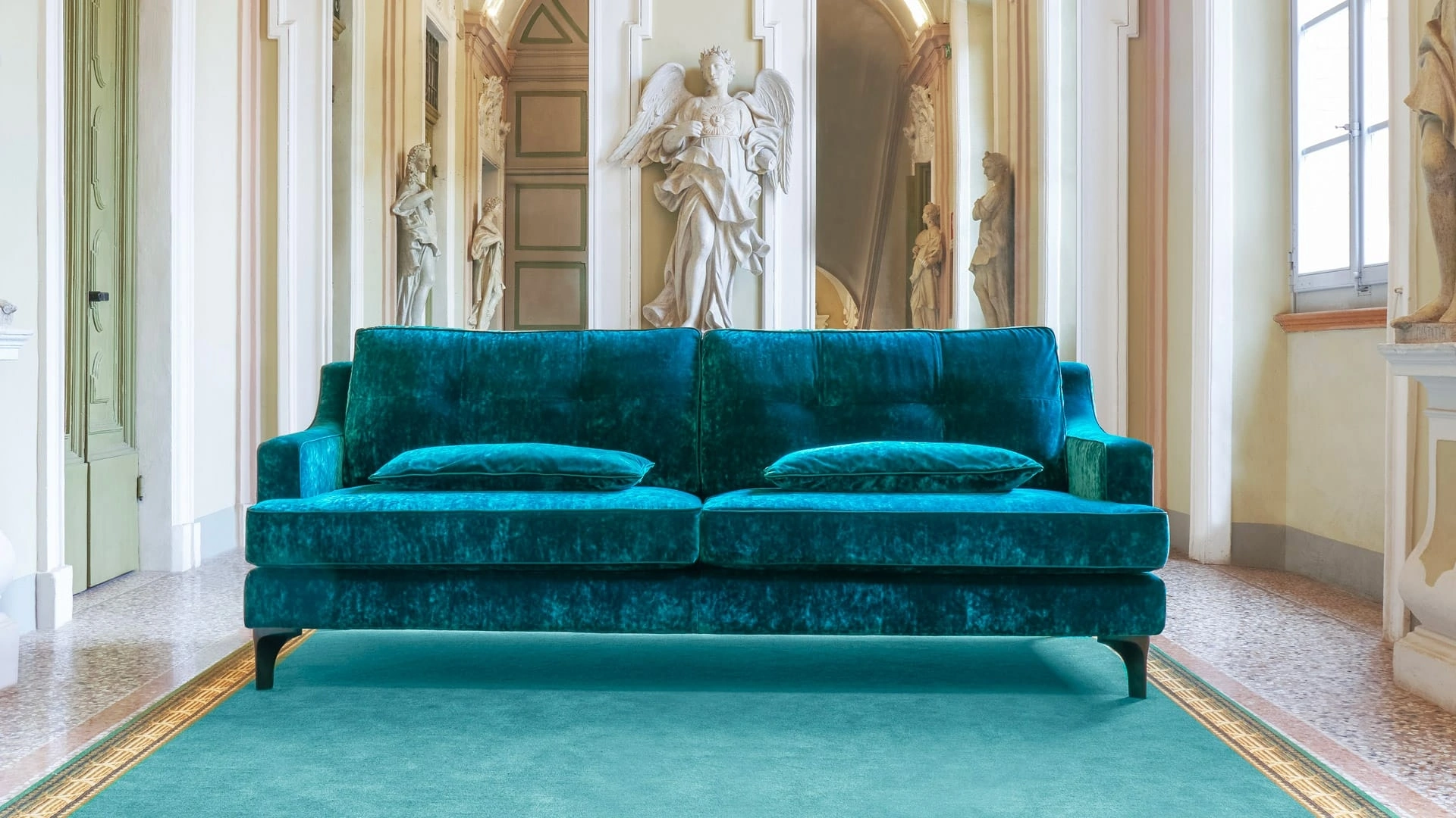 Se desideri divani per salotti classici, clicca e leggi di più sul modello Gilberth in tessuto dell'azienda Cava Divani.